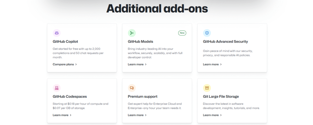 It’s access to private repositories, improved analytics tools, CI/CD integrations, and also exclusive features like GitHub Codespaces.